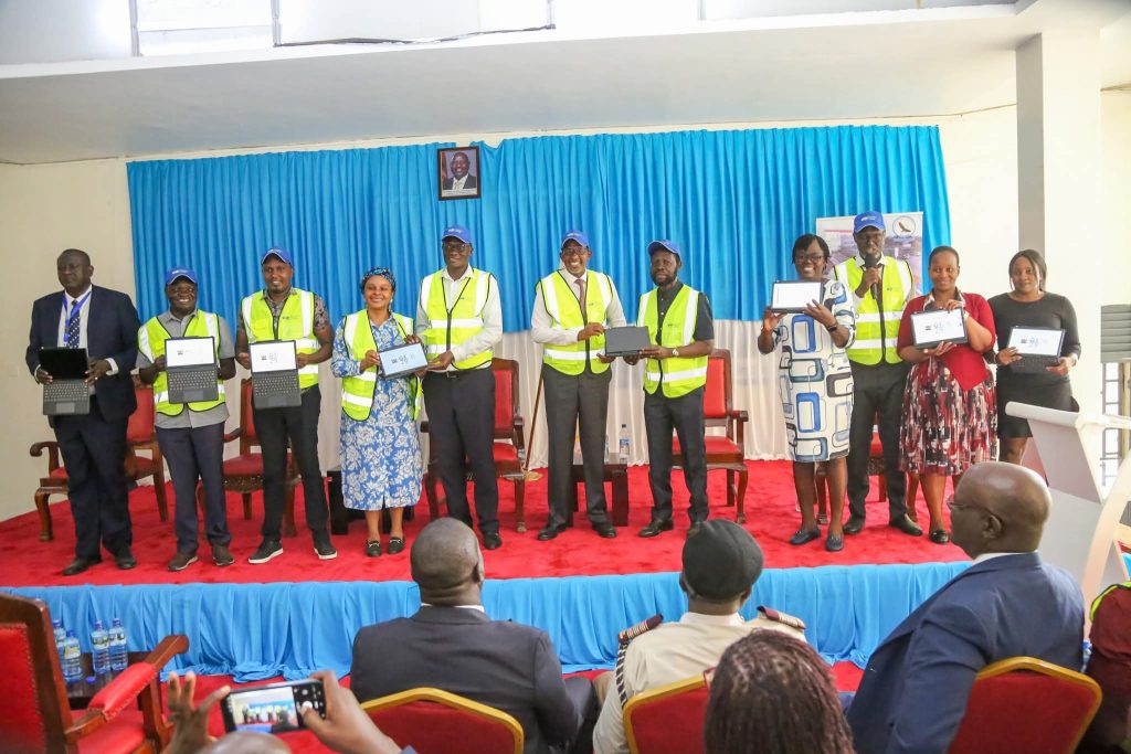 CS Duale handed 1,112 tablets and 220 desktops to health workers in Kisumu.