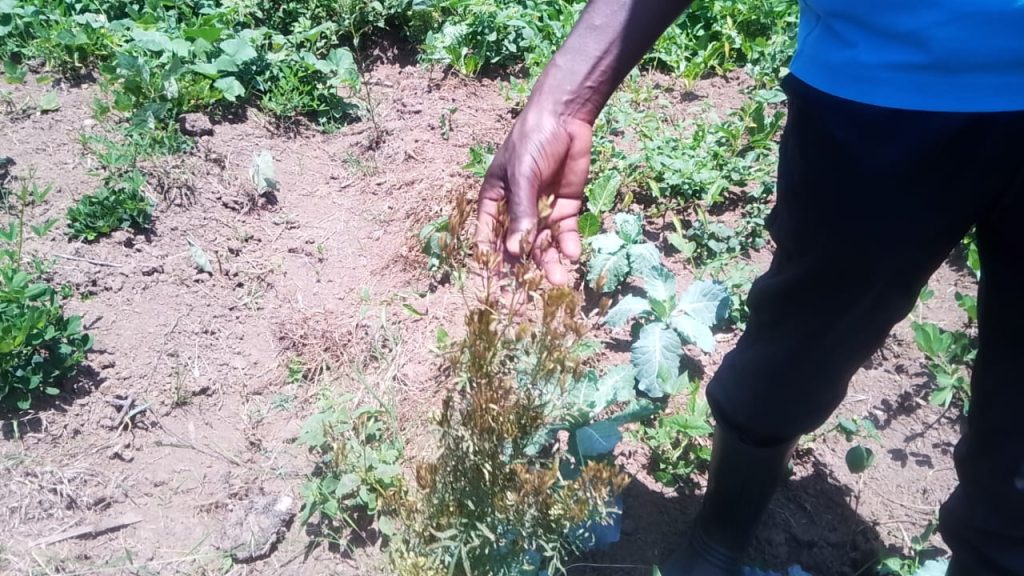 For a liquid organic pesticide, Jennifer advises that farmers should soak marigold leaves with Tithonia, garlic, and hot pepper for three days. Mulching with dry grass is widely practised to conserve soil moisture, with the grass later decomposing into organic manure.
