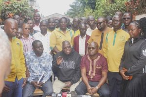 KUPPET Secretary General Akello Misori (middle, wearing a black hoodie) recently led a meeting with Nyanza region officials in Kisumu. Photo | The Eyes Watch